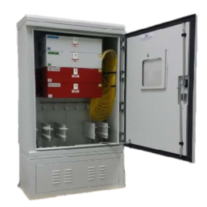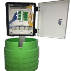 The Fiber Distribution Terminal Pedestal accommodates two 2:32 fiber optic splitter inside of the metallic box . It  protects  the  splicing  point  from outside