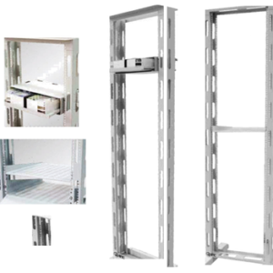 Top frame perforated for effective ventilation Ventilation unit can be installed in top frame Four sliding 19″ vertical Mounting angles